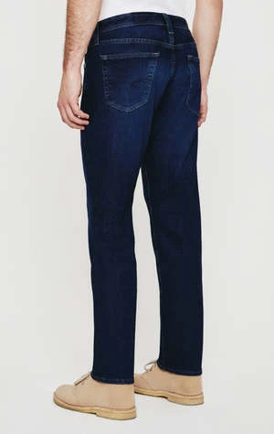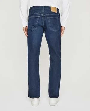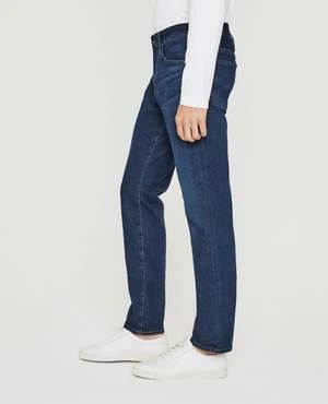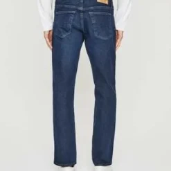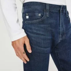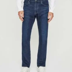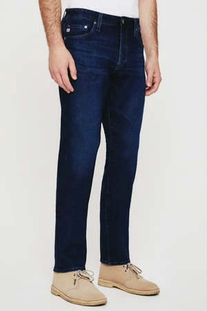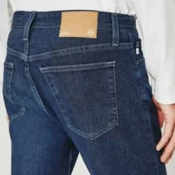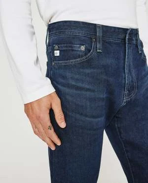 Everett is a slim straight men’s jean featuring a dark blue wash with faded details. Made using AG’s eco-friendly Vapor Wash technology, this pair has a comfortable mid-rise waist with a straight fit that’s relaxed from hip to the knee before slightly tapering at the leg opening. This men’s slim straight jean is designed in 11 oz. Static Stretch 360 Denim that moves with you and bounces right back into shape. Our Vapor Wash process significantly reduces the use of water, chemicals, and energy to lessen environmental impact. Finished with a vegan and 100% biodegradable cellulose patch at the back waistband.