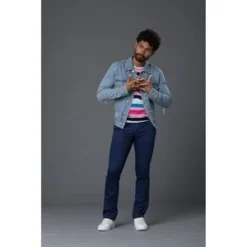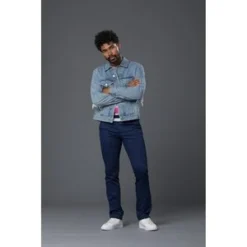 AGOLDE continues to push ingenuity in the premium denim market with the Preston Jean Jacket in Trelick. The classic trucker jacket has a vintage wash in light blue denim with a button-down front, button-flap chest pockets and side pockets. Heavy distressing on the elbows gives the jacket a real lived in edge. Finished with classic hardware at the cuffs + waist for an adjustable fit, this classic trucker will age better with wear and tear. Worn with the DAVID HART Stripe Pullover Sweater and the KRAMMER & STOUDT Brighton Trouser.