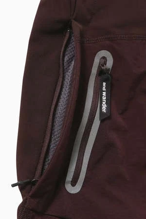Stretch double-woven water-repellent material with raised back. Breathable nylon material is used for hem. Side ventilation and wide three-dimensional pattern make it comfortable to wear in active scenes. The pocket fastener is pressure bonding.