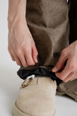 The Crack Cargo Pants from Korean designers Andersson Bell add a modern flare to the workwear favourite with a wide-leg silhouette and subtle bleaching for a perfectly aged appearance. As you’d expect, these pants are loaded with pockets from regular-sized flap pockets circlign the waist to positively gigantic cargo pockets that are secured with oversized drawstrings and adjustable with button tabs. The pants themselves are made from a durable nylon with a good deal of stretch and plenty of room thanks to their directional structure.
