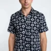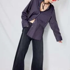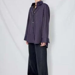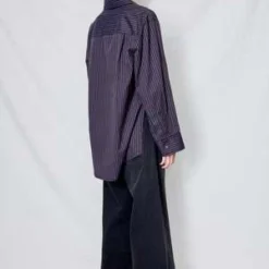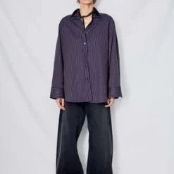 Dark Navy Stripe Cotton Oxford Shirt from Assembly New York. Relaxed fit. Button front closure. Side vents.