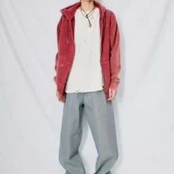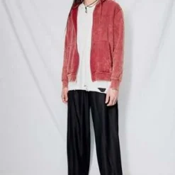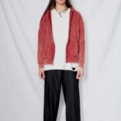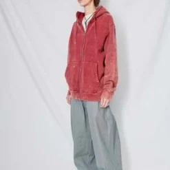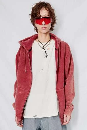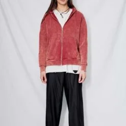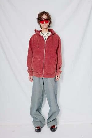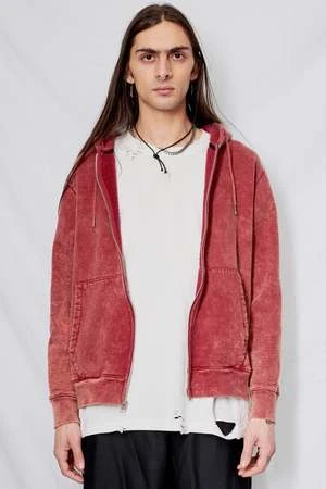Oxblood Cotton Zip Hoodie from Assembly New York. Relaxed fit. Zip front closure. Metal drawstring detail.