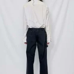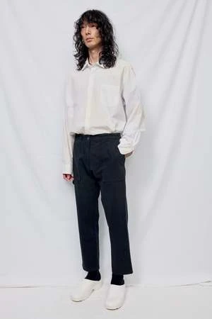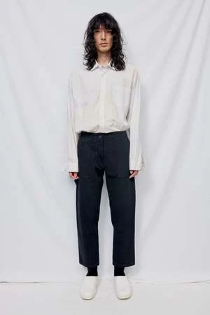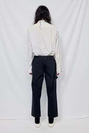 Black Overdye Denim Vietnam Pant from Assembly New York. Straight leg. Front patch pockets. Back flap pockets. Semi elasticized waistband.