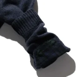 It is blended with nylon, but the soft texture, which is a feature of lambswool, is finished as it is.