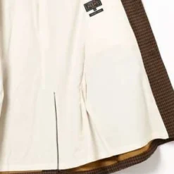 Double twill cloth using 2/30 thick carded yarn. By weaving with a loin thread, the surface of the pattern has a depth in color. It is also characterized by moderate firmness and firm texture. A slippery cupra is used for the lining of the sleeve part, which reduces stress when wearing it.