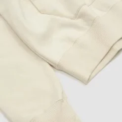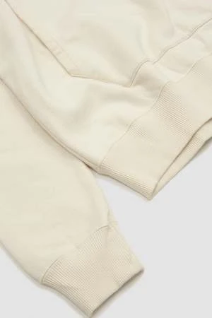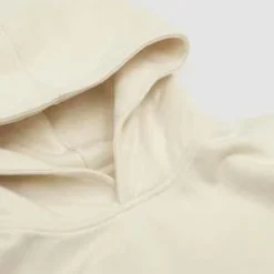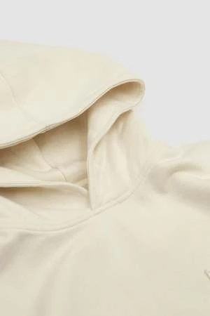 A drop shoulder hoodie produced in a soft Portuguese cotton/wool. Made with an over dimensioned kangaroo pocket and 2×2 rib at cuffs and bottom hem. Signature small main fabric patch with raw edge.