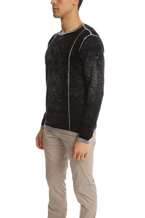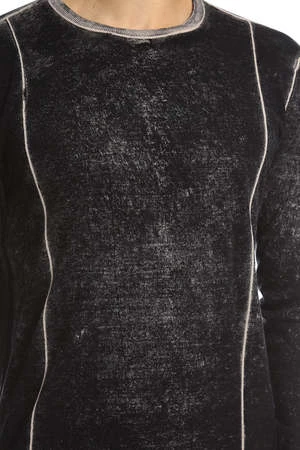 With a unique painted on effect, this over dyed garment is the perfect edgy touch to any wardrobe. Buttery soft cashmere sweater with a trans seasonal weight is perfect for year long use.