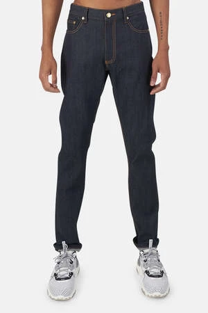 Blue&Cream’s very own Raw Indigo denim is fabricated at the Cone Mills plant in North Carolina, USA. It’s widely regarded to be some of the best denim in the world. This double-needle stitched, skinny straight fit alternative is perfect for the guy who likes room in the thigh, but wants a slim feel around the calf to preserve a modern look. The rare 100% selvedge denim, which is stiff at first will break in for a personalized fit and feel. The cotton yarn is dyed in a process called Long Chain Dying that gives the jean a much deeper indigo color.