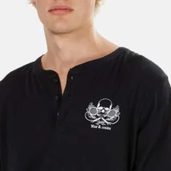It’s all about the crossroads of comfort & style when it comes to this exclusive Blue&Cream Private Label henley. Features classic skull graphic logo.