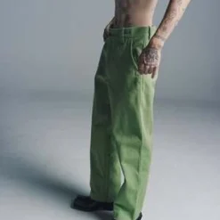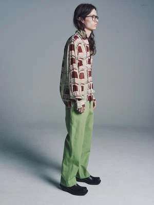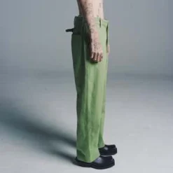 These trousers are inspired by a pair of french twill workwear trousers, circa 1940s. The silhouette is that of a traditional trouser high rise, straight leg. Includes adjustable back buckle for ideal fit, two front slash pockets, & one back patch pocket. All wear, mending, and idiosyncrasies are unique to the original textile.