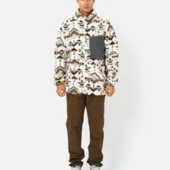 This cosy fleece is an ideal layering piece, and features a zippered chest pocket, hand pockets and a unique all over Rocky Mountain Print.