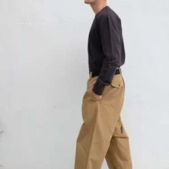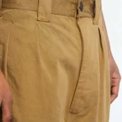 The officer chino, made from a top notch crispy cotton, was created for those that like it extra loose and extra relaxed. Features a high waist, loose legs with a slight taper, and even more volume thanks to the double pleated front.