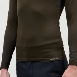 The Transport First Layer Soil Brown from gr10k is a thermal knit running top. A carryover style, it features a two-tone colour design, gr10k logo knitted into the front of the top and jacquard logo and product information knitted into the bottom hem. It is a slim fit intended to be worn as either an undergarment or outer running or exercise top. Crafted from 87% polypropylene, 10% PA and 3% elastane. Manufactured in Italy.