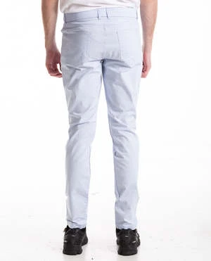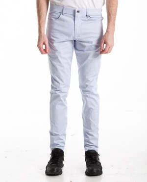 Amagansett 5-Pocket Pant in ash by Greyson. The Amagansett is a lightweight cotton-twill pant designed to be worn straight from a cool day on the course to a night out on the town. The G logo is stitched into the coin pocket inside the front right pocket with a subtle contrasting GREYSON stitched into the rear waistband.