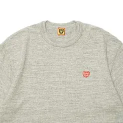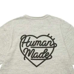-A Graphic T-shirt with Human Made’s standard rounded body. It has printed heart-shaped logo graphic on back and embroidery heart logo on the front.