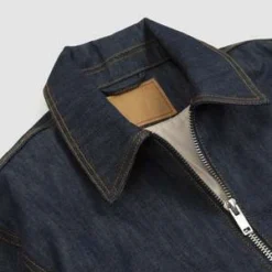 Stockton is a modern take on the classic aviator jacket with a contemporary design. Slightly cropped, with pointy collars that nudge to typical retro styles. Featuring front pockets with hidden buttons and a two-way zipper. Made in a rigid raw denim, made from over 50% recycled materials.