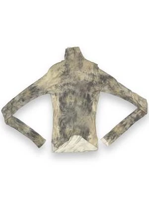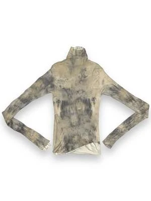 Each garment is hand dyed utilizing natural ingredients to create a unique composition through the oxidizing iron process. No two dyed garments are alike, and reveal their ephemeral nature to the wearer over time. Due to the nature of the dye, the color in this garment is meant to fade over time creating a more intimate and personal connection with the wearer. This turtleneck is thinner to allow for layering, hugging the wearer in a soft cotton/modal blend fabric.