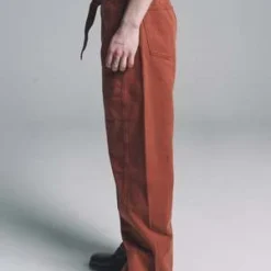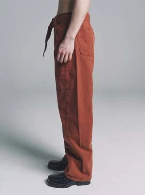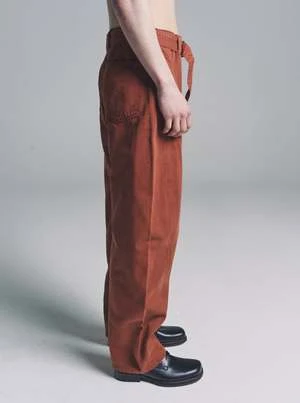 These unisex pants are a LEMAIRE classic, made of a heavy garmentdyed denim, with a thick, round hand. Their sideseams are slightly twisted giving the leg a curved shape. Details include two side pockets, back patch pockets and contrast stitching. The fit is elongated and midrise and includes a matching belt to adjust the waist.