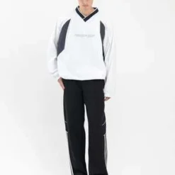 Model is 6’1 (185cm), 159 pounds (72 kg), usually wears S in tops. A size 30 in denim and 46 trousers. Size 10 in shoes.