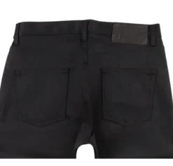 The Black Power Stretch is a 12oz denim dyed black on both the warp and weft for a solid black color tone. The dye is resistant to fading to ensure the jeans stay blacker longer. Made with 5% stretch for increased comfort and incredible stretch recovery performance that allows the jeans to snap back to shape wear after wear. Other details include tonal stitching, full grain black leather patch, and black mil-spec non-reflective waist button and rivets.