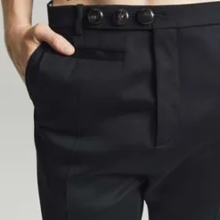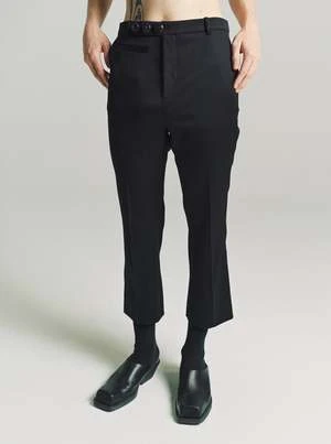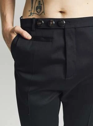 Classic tailored trouser with cropped leg length.