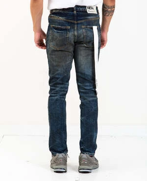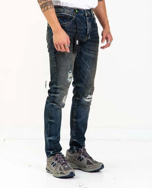 Thunders Dirty Overdye Jeans in dark indigo by Neon Denim Brand. This jean features a distressed fabric on the knee part with 5 pockets.