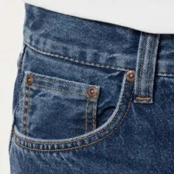 Regular fit jeans with a straight leg made in rigid denim consisting of organic and pre-consumer recycled cotton. This amazingly satisfying ’90s style stonewash got it all; smooth contrasts, clear blue hue, salt ‘n pepper grain, and defined twill lines. We would call them classic, but unmistakably iconic is more suitable.