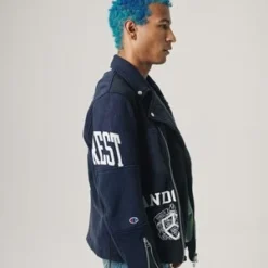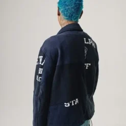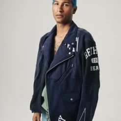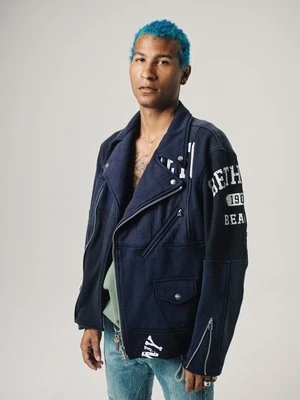 Made by Kiminori Nakamura of Old Park, and Exclusively Sold at Departamento Outside of Japan. Upcycled Navy Blue Cotton Sweatshirt Material Constructed into the Oversized Riders Jacket. For Images of Exact Items, Email [email protected]