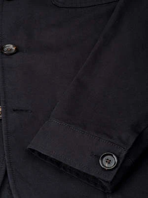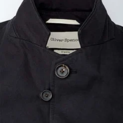 The Solms jacket is a signature piece from the Oliver Spencer. A five-buttoned, unstructured work-wear inspired jacket with functional design and a relaxed cut. Regular, relaxed fit designed as a casual blazer but enough room to layer-up without feeling too boxy. The jacket is cut from organic cotton drill finished with two front patch pockets and a single chest pocket.