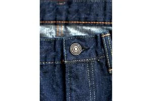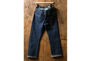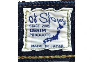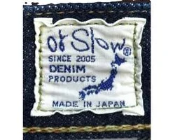 or Slow five pocket classic straight which was completed after 3 years of trial and error since the brand was launched. The silhouette is not too slim or too wide, and the front is a button fly. Original denim is woven with an old-fashioned shuttle loom using specially treated uneven yarn. By repeatedly wearing and washing, you can see a unique color fading like no other.