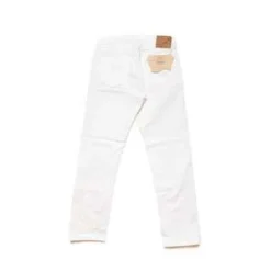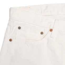 orSlowss 107 fit is a mid rise, slim taper fit, styled after fits popularized by 1960s youth. Constructed from a custom-loomed white denim that features a noticeable slub, the jeans feature orSlows custom hardware and paper patch on the waistband.