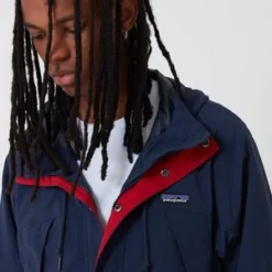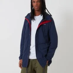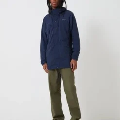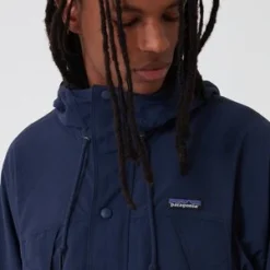 The Patagonia Recycled Nylon Parka Jacket in new navy from the Patagonia outerwear Autumn Winter collection. A Patagonia heritage inspired lightweight jacket made in versatile, weather-resistant recycled nylon. Fair Trade Certified sewn.
