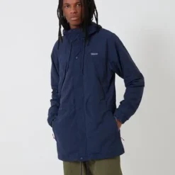 The Patagonia Recycled Nylon Parka Jacket in new navy from the Patagonia outerwear Autumn Winter collection. A Patagonia heritage inspired lightweight jacket made in versatile, weather-resistant recycled nylon. Fair Trade Certified sewn.