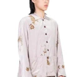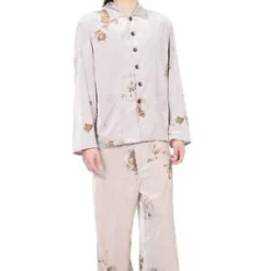 Peng Tai creates modern silhouette with traditional chinese philosophy. Inspired by how Chinese herbal medicine regulates the body from the inside out, Peng Tai aims to research and develop a way to boil Chinese herbal medicine with fabrics, to create clothes that feel like a second skin as seen with the Velvet Chinese Medicine Print Pyjama Jacket.