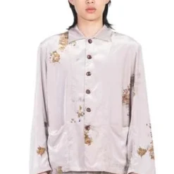 Peng Tai creates modern silhouette with traditional chinese philosophy. Inspired by how Chinese herbal medicine regulates the body from the inside out, Peng Tai aims to research and develop a way to boil Chinese herbal medicine with fabrics, to create clothes that feel like a second skin as seen with the Velvet Chinese Medicine Print Pyjama Jacket.