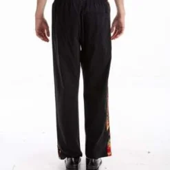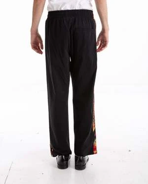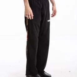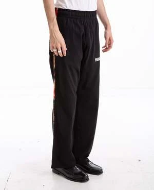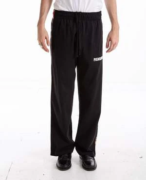 Tape Track Pants in black by Pleasures. Features and elastic waist with a drawcord, side and back pockets.