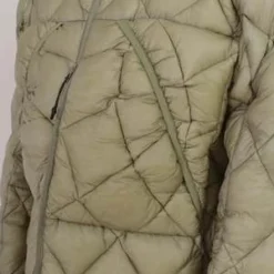 Crafted with an ultra-lightweight micro-ripstop shell, our down jacket offers a perfect balance of minimized weight, enhanced durability, and superior thermal insulation. Its unique see-through effect gives it a distinctive style. Reinforced elbow patches and chest panel. Zip closure along the centre and two side pockets.