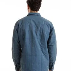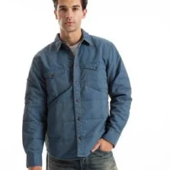 Western Overshirt in blue by RRL. This Western Overshirt is a perfect choice for outdoor activities. Crafted with water-repellent nylon, lightweight polyester filling, and southwest-inspired printed lining, it is comfortable and durable. It also features channel quilted construction, two snapped flap front chest pockets, snapped placket closure, and side on-seam pockets. The perfect finishing touch is the classic point collar.