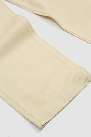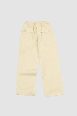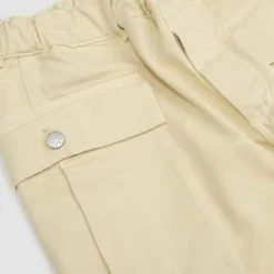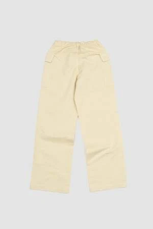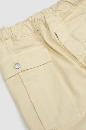 Relaxed-fit cargo pants with an elastic waistband and two spacious flap pockets at the front. Made of dyed 100% cotton twill. Button fly and pockets.