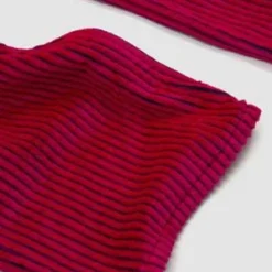 Loose/ relaxed fit. Jumbo cord with two tone colouration, navy black in base with pink highlight.