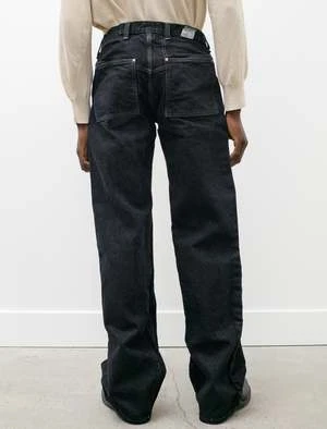 Among the widest of Tender’s denim selection, the Oxford jeans offer a generous straight leg and medium rise. This edition is constructed from a sixteen ounce denim that has been overdyed using a highly stable mineral pigment derived from iron containing rocks; though this is among the most tenacious of natural dyes, some amount of fading and / or colour transfer can be expected. Feature the classic Tender denim five pocket styling with straight cut front pockets that will stretch to curve over time. Constructed with Tender’s signature hyper-durable finish that will last many years to come.