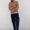 Jogger style pant with elastic waistband and ankle. Relaxed fit with full legs. Pockets at side seam.