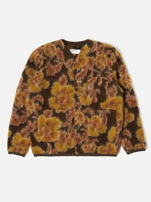The Flower Fleece Cardigan from Universal Works is a comfortable, regular-fitting piece of knitwear with a five-button front, jersey-bound cuffs, hem and placket, and multi-use patch pockets. The fleece was knitted for UW in Italy, this high wool content fleece is super soft, yet durable, with a brushed hand feel and a flower design. An ideal layer for cooler days and nights.