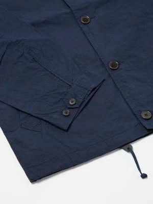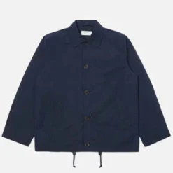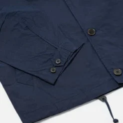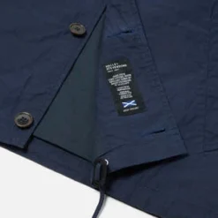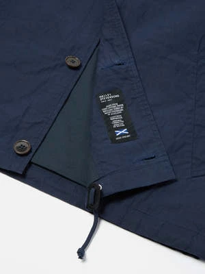 The Wayfarer Jacket from Universal Works is a relaxed-fitting coach-style jacket. Crafted from a dry, light, water-resistant waxed cotton fabric by Halley Stevensons of Dundee, Scotland. Finished with two large welt front pockets, front button closure, and a cord adjustable hem.