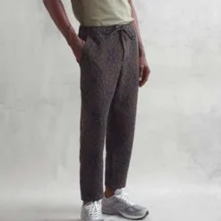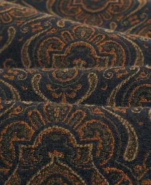 The baroque pattern is woven on a jacquard loom, with our partner French mill, using navy, black, khaki and ochre yarns.