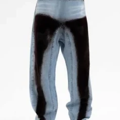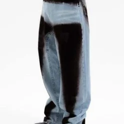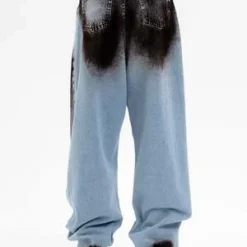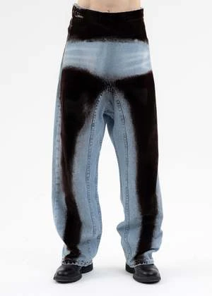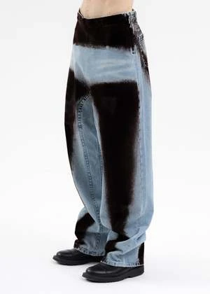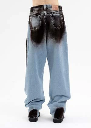 Souffle flocked jeans in blue, from Y-Project. Uniquely paneled relaxed construction with drop-crotch styling and velvet flocking throughout. Tonal stitching throughout. Silver-tone fastening hardware at either hip. Finished with tonal stitching throughout.